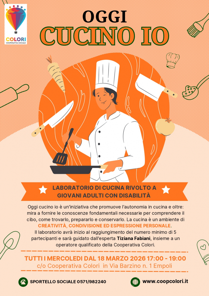 Non è solo un corso di ricette, ma un percorso verso l’autodeterminazione. Mercoledì 18 marzo 2026 prenderà il via a Empoli “Oggi cucino io”, un’ iniziativa della Cooperativa Colori dedicata allo sviluppo dell’autonomia attraverso l’arte culinaria, un nuovo ciclo dopo il successo dei precedenti già svolti.